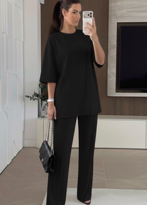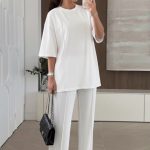 Κομψό και minimal σετ σε άσπρο χρώμα, ιδανικό για μοντέρνες και άνετες εμφανίσεις. Περιλαμβάνει oversized μπλούζα με κοντό μανίκι και ίσια γραμμή που προσφέρει άνεση και στυλ, συνδυασμένη με ψηλόμεση παντελόνα σε ίσια γραμμή για κομψή σιλουέτα. Το ύφασμα είναι απαλό και ελαφρύ, προσφέροντας άνεση καθ’ όλη τη διάρκεια της ημέρας. Φοριέται εύκολα από το πρωί έως το βράδυ και συνδυάζεται ιδανικά με πέδιλα ή γόβες για πιο chic αποτέλεσμα. -one size