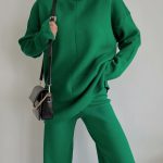 Πλεκτό σετ παντελόνι & μπλούζα σε loose γραμμή απαλής ύφανσης – θαλλασι