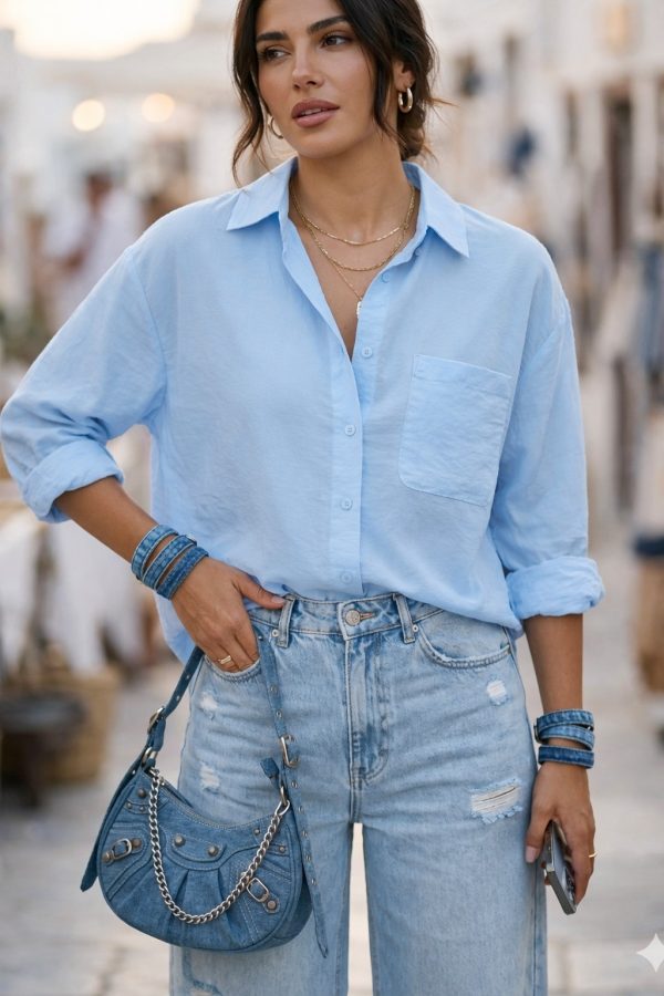 Κομψό γυναικείο πουκάμισο σε γαλάζιο χρώμα που προσθέτει φρεσκάδα και στυλ σε κάθε εμφάνιση. Με χαλαρή γραμμή και ελαφρύ ύφασμα, προσφέρει άνεση και κομψότητα όλη την ημέρα. Ιδανικό για casual αλλά και πιο προσεγμένες εμφανίσεις, συνδυάζεται εύκολα με τζιν, παντελόνια ή φούστες.
