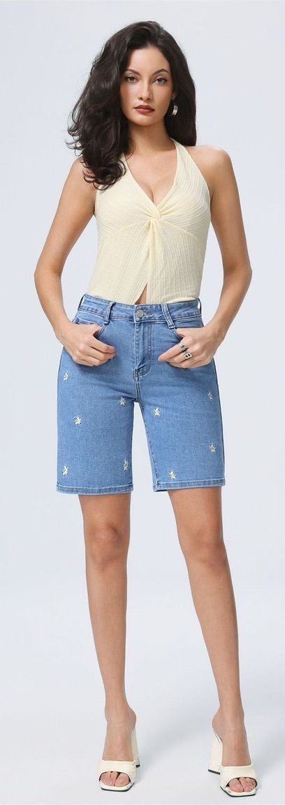 Παντελόνι τζιν σορτς σε κλασσική, ίσια γραμμή που φτάνει λίγο πάνω από το γόνατο,προσφέροντας άνεση και διαχρονικό στυλ. Είναι κατασκευασμένο από denim ύφασμα με ελαφριά ελαστικότητα, που αγκαλιάζει το σώμα χωρίς να περιορίζει την κίνηση.Διαθέτει ψηλόμεση εφαρμογή που τονίζει τη μέση και κλείσιμο με κουμπί και φερμουάρ για σταθερή εφαρμογή. Το ανοιχτό μπλε χρώμα του χαρίζει φρέσκια, καλοκαιρινή αισθητική, ενώ οι διακριτικές διακοσμητικές λεπτομέρειες στο μπροστινό μέρος προσθέτουν μια ιδιαίτερη πινελιά.Στο πίσω μέρος υπάρχουν λειτουργικές τσέπες, καθιστώντας το πρακτικό για καθημερινή χρήση. Ιδανικό για casual εμφανίσεις, συνδυάζεται εύκολα με tops, t-shirts ή πουκάμισα, δημιουργώντας χαλαρά αλλά προσεγμένα looks. Τα μεγέθη είναι από 42-52