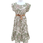 Εμπριμέ φόρεμα τσιγγάνικο midi με διάτρητο κέντημα και διακοσμητική ζώνη