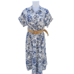 Φόρεμα φλοράλ με μανίκι κοντομάνικο γιακά διακοσμητικά κουμπιά μπροστά στο στήθος και ζώνη στη μέση